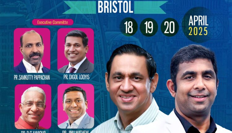ബ്രിസ്റ്റോൾ : യൂറോപ്പിലെ മലയാളി പെന്തകോസ്ത് സമൂഹത്തിന്റെ ഏറ്റവും വലിയ ആത്‌മീയ സംഗമമായ 22 മത്‌ എം പി എ യു കെ യുടെ നാഷണൽ കോൺഫറൻസ് ഇംഗ്ലണ്ടിലെ ബ്രിസ്റ്റോൾ പട്ടണത്തിൽ ഒരുക്കങ്ങൾ പുരോഗമിക്കുന്നു 2025 ഏപ്രിൽ 18, 19, 20 തീയതികളിൽ നടത്തപ്പെടുന്ന കോൺഫറൻസ്സിൽ മലയാളി പെന്തകോസ്റ്റൽ അസോസിയേഷൻ പ്രസിഡന്റ് റവ ബിനോയ് എബ്രഹാം ഉദ്ഘാടനം നിർവഹിക്കും. കോൺഫറൻസിൽ പാസ്റ്റർ ബി.മോനച്ചൻ മുഖ്യ പ്രസംഗകനായിരിക്കും. ഇത്തവണത്തെ കോൺഫറൻസിൽ കൂടുതൽ യുവ തലമുറയുടെ പങ്കാളിത്തത്തോടെ ഏറെ മികവാർന്ന നിലയിൽ നടത്തുന്നതിനുള്ള ക്രമീകരണങ്ങൾ നടന്നുവരുന്നു.