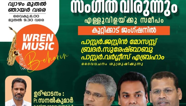 കുറ്റിക്കാട് : കുറ്റിക്കാട് അസംബ്ലീസ് ഓഫ് ഗോഡ് ചർച്ചിന്റെ ആഭിമുഖ്യത്തിൽ നവംബർ 28 മുതൽ ഡിസംബർ 01 വരെ എള്ളുവിളയ്ക്കു സമീപം കുറ്റിക്കാട് ജംഗ്ഷനിൽ സുവിശേഷ മഹായോഗവും സംഗീത വിരുന്നും നടക്കും.