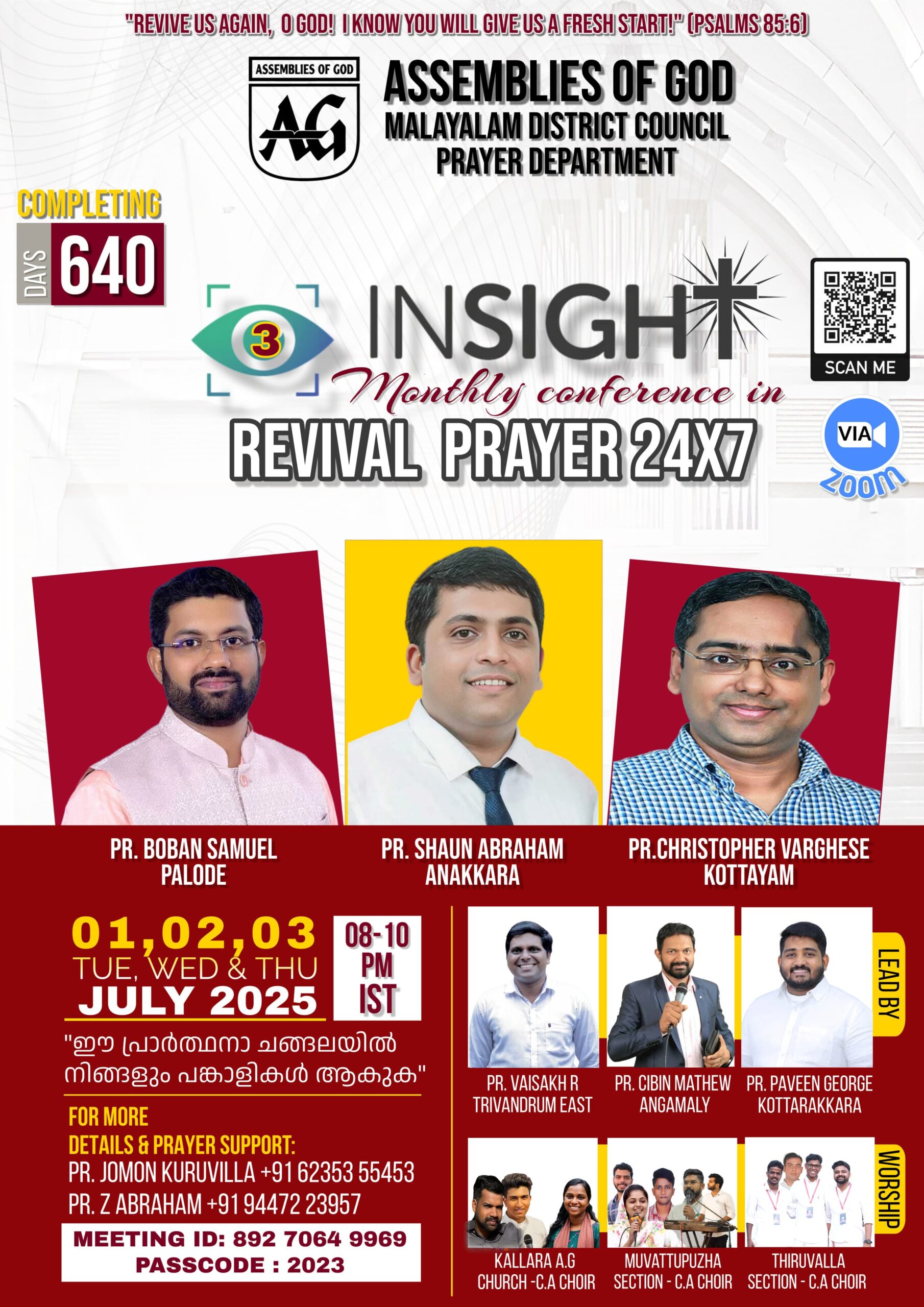 പാസ്റ്റർ ജോമോൻ കുരുവിള 6235355453, പാസ്റ്റർ ഇസഡ്.ഏബ്രഹാം 9447223957 എന്നീ നമ്പരുകളിൽ ബന്ധപ്പെടുക.