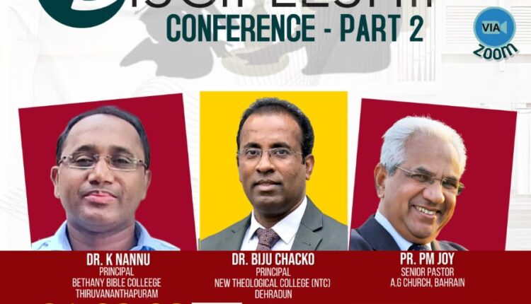 ഒക്ടോബർ 2 മുതൽ 4 വരെ ഡിസൈപ്പിൾഷിപ്പ് കോൺഫറൻസ് പാർട്ട് 1 നടത്തിയിരുന്നു ദിവസവും ഇന്ത്യൻ സമയം രാത്രി 8 മുതൽ 10 വരെ നടക്കുന്ന മീറ്റിംഗുകളിൽ തിരുവനന്തപുരം ബഥനി ബൈബിൾ കോളേജ് പ്രിൻസിപ്പാൾ ഡോ. കെ. നന്നു, ഡറാഡൂൺ ന്യൂ തിയോളജിക്കൽ കോളേജ് പ്രിൻസിപ്പാൾ ഡോ.ബിജു ചാക്കോ, എ.ജിബഹ്റിൻ സഭയുടെ സീനിയർ ശുശ്രുഷകനായ പാസ്റ്റർ പി.എം.ജോയി എന്നിവർ മുഖ്യസന്ദേശങ്ങൾ നല്കും.