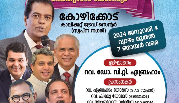 കോഴിക്കോട് : 2024 ജനുവരി 4 മുതൽ 7 വരെ കോഴിക്കോട് സ്വപ്ന നഗരിയിൽ കാലിക്കറ്റ് ട്രേഡ് സെന്ററിൽ വെച്ച് നടക്കുന്ന അസംബ്ളീസ് ഓഫ് ഗോഡ് മലബാർ ഡിസ്ട്രിക്ട് സിൽവർ ജൂബിലി സമ്മേളനങ്ങൾക്ക് ഒരുക്കങ്ങൾ ആരംഭിച്ചു.