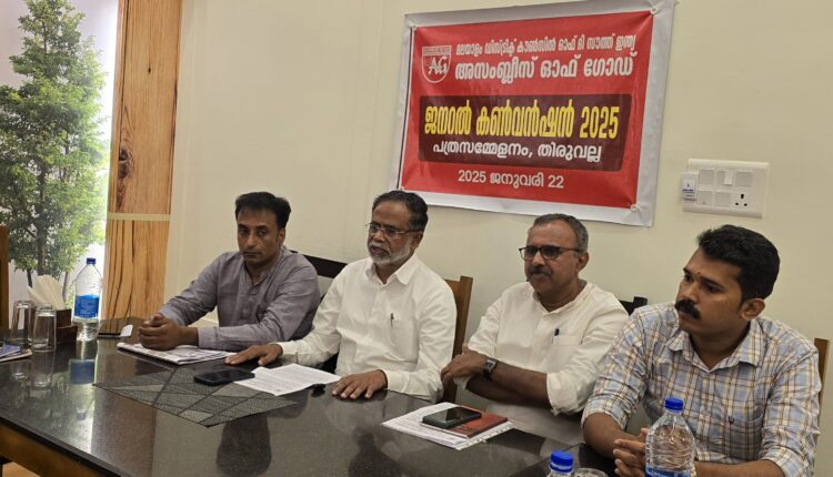 അടൂർ-പറന്തൽ : അസംബ്ലീസ് ഓഫ് ഗോഡ് മലയാളം ഡിസ്ട്രിക്ട് ജനറൽ കൺവൻഷൻ ജനുവരി 27 തിങ്കൾ വൈകിട്ട് ആറിനു നടക്കുന്ന പൊതു സമ്മേളനത്തിൽ സഭാ സൂപ്രണ്ട് റവ.റ്റി ജെ സാമുവേൽ ഉദ്ഘാടനം ചെയ്യും.