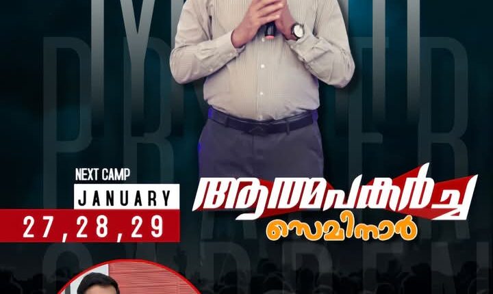റാന്നിയിൽ ഐക്കാട് പ്രയർ ഗാർഡൻ ആത്മ പകർച്ച സെമിനാർ ChristianNews On Jan 16, 2025 136 റാന്നി : റാന്നി ഐക്കാട് പ്രയർ ഗാർഡന്റെ ആഭിമുഖ്യത്തിൽ ജനുവരി 27 മുതൽ 29 വരെ നെല്ലിക്കമൺ ഊട്ടുപാറ സകൂളിന് സമീപം ആത്മ പകർച്ച സെമിനാർ നടക്കും. പാ. സുനി ഐക്കാട്, സിസ്റ്റർ നിസി സുനി എന്നിവർ നേതൃത്വം നൽകും. 136 Share
