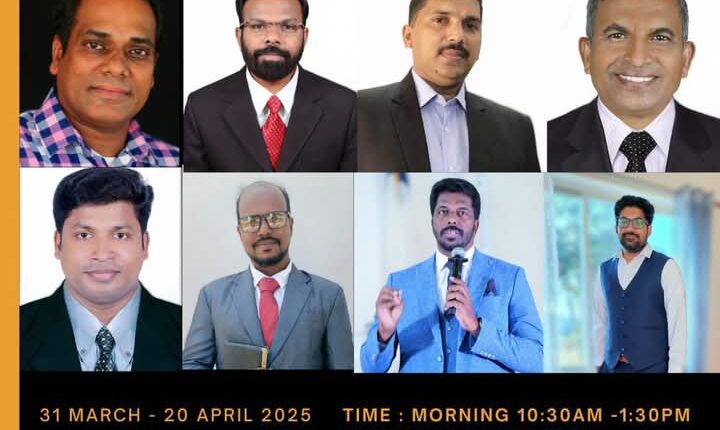 കർണാടക : അംബുഗ ബെഥേസ്ഥ ചർച്ചിന്റെ ആഭിമുഖ്യത്തിൽ മാർച്ച് 31 മുതൽ ഏപ്രിൽ 20 വരെ അംബുഗ ബെഥേസ്ഥ ചർച്ചിൽ 21 ദിന ഉപവാസ പ്രാർത്ഥന നടക്കും.