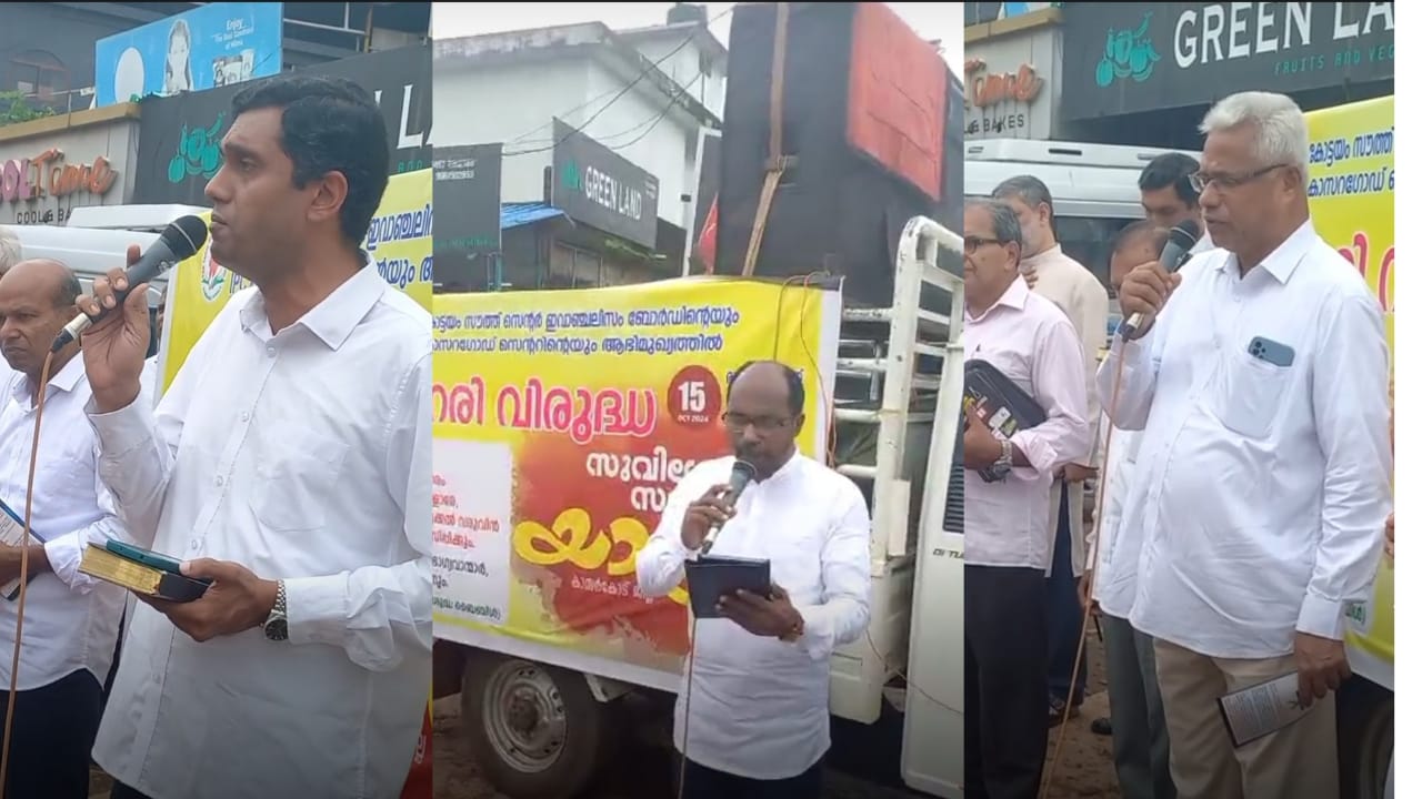 ചെറുവത്തൂരിൽ ലഹരി വിരുദ്ധ സുവിശേഷ സന്ദേശ യാത്ര നടന്നു ChristianNews On Oct 15, 2024 91 ചെറുവത്തൂർ : ഐപിസി കോട്ടയം സൗത്ത് സെന്ററിന്റെയും ഐപിസി കാസർഗോഡ് സെന്ററിന്റെയും സംയുക്ത ആഭിമുഖ്യത്തിൽ (ഒക്ടോബർ 15) ചൊവ്വാഴ്ച ചെറുവത്തൂരിൽ ലഹരി വിരുദ്ധ സുവിശേഷ സന്ദേശ യാത്ര നടന്നു. വിവിധ ദൈവദാസന്മാർ സന്ദേശം നൽകി. 91 Share