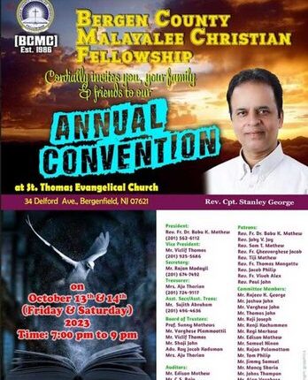 കൂടുതൽ വിവരങ്ങള്ക്ക്: റവ. ഫാ. ഡോ. ബാബു കെ. മാത്യു, പ്രസിഡന്റ് 201 562-6112 വിക്ലിഫ് തോമസ്, വൈസ് പ്രസിഡന്റ് (201) 925-5686