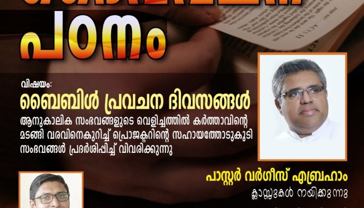 ഉതിമൂട് ഐപിസി ഹെബ്രോൺ ദൈവസഭയുടെ നേതൃത്വത്തിൽ മൂന്ന് ദിന ബൈബിൾ ക്ലാസ് സഭയിൽ വെച്ച് നടത്തപ്പെടുന്നു. 2023 ഒക്ടോബർ 29,30,31(ഞായർ, തിങ്കൾ, ചൊവ്വ) തീയതികളിൽ വൈകുന്നേരം 6:30 മുതൽ 9 മണി വരെ. സുപ്രസിദ്ധ കൺവെൻഷൻ പ്രസംഗകനും റാന്നി ഈസ്റ്റ് സെന്റർ ശുശ്രൂഷകനുമായ പാ. വർഗീസ് എബ്രഹാം ക്ലാസ്സുകൾ നയിക്കുന്നു. പാ. സോനു ജോർജ് ഈ ശുശ്രൂഷകൾക്ക് നേതൃത്വം നൽകുന്നു.