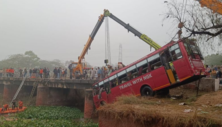 പഞ്ചാബിലെ ബത്തിന്ഡയിലാണ് സംഭവം. പരിക്കേറ്റവരെ ആശുപത്രിയിൽ പ്രവേശിപ്പിച്ചു. മഴയെ തുടര്ന്ന് ഓടിക്കൊണ്ടിരുന്ന ബസ് ഓടയിലേക്ക് മറിയുകയായിരുന്നു. പാലത്തിന് കൈവരിയുണ്ടായിരുന്നില്ല. ബസില് ഇരുപതിലധികം യാത്രക്കാര് ഉണ്ടായിരുന്നുവെന്ന് അധികൃതര് വ്യക്തമാക്കി.പ്രധാനമന്ത്രി നരേന്ദ്ര മോദി മരണത്തിൽ അനുശോചനം രേഖപ്പെടുത്തുകയും മരിച്ചവരുടെ കുടുംബത്തിന് 2 ലക്ഷം രൂപ വീതവും പരിക്കേറ്റവർക്ക് 50,000 രൂപയും നഷ്ടപരിഹാരം പ്രഖ്യാപിക്കുകയും ചെയ്തു.