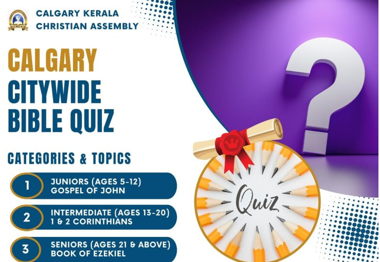 കാനഡയിൽ കാൽഗറി ബൈബിൾ ക്വിസ് ChristianNews On Jul 11, 2024 67 കാൽഗറി : കാൽഗറി കേരള ക്രിസ്ത്യൻ അസംബ്ലിയുടെ ആഭിമുഖ്യത്തിൽ കാൽഗറി കേരള ക്രിസ്ത്യൻ അസംബ്ലി സെന്ററിൽ ഓഗസ്റ്റ് 17 ന് കാൽഗരി ബൈബിൾ ക്വിസ് നടക്കും. പാ കുര്യാച്ചൻ ഫിലിപ്പ് നേതൃത്വം നൽകും 67 Share