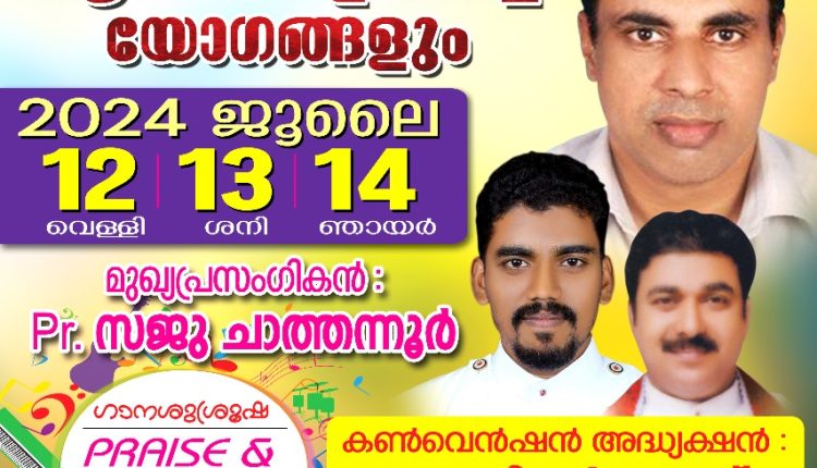 പാ സജു ചാത്തന്നൂർ പ്രസംഗിക്കും,റവ ടിന്റോ രാജ് അധ്യക്ഷത വഹിക്കും, പ്രയ്സ് ആൻഡ് വർഷിപ് ചർച്ച് ക്വയർ ഗാന ശുശ്രുഷയ്ക്ക് നേതൃത്വം നൽകും.