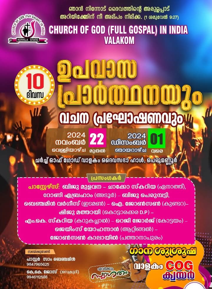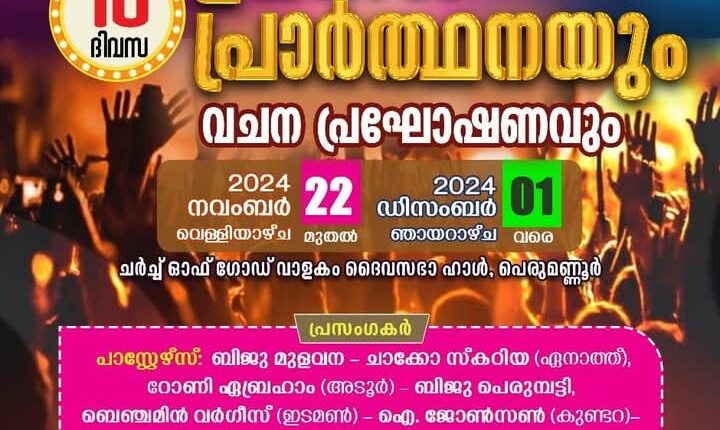 ചർച്ച് ഓഫ് ഗോഡ് ഇൻ ഇന്ത്യ വാളകം സഭ 10 ദിവസ ഉപവാസ പ്രാർത്ഥന
