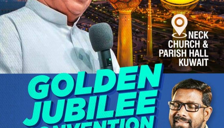 കുവൈറ്റ്: ചർച്ച് ഓഫ് ഗോഡ് (ഫുൾ ഗോസ്പൽ) ഇൻ ഇന്ത്യ, കുവൈറ്റ് സഭയുടെ സുവർണ്ണ ജൂബിലി സമാപനത്തോട് അനുബന്ധിച്ചുള്ള കൺവൻഷൻ മെയ് 15 മുതൽ 17 വരെ കുവൈറ്റ് സിറ്റി എ ഇ സി കെ ചർച്ച് &പാരിഷ് ഹാളിൽ നടക്കും.