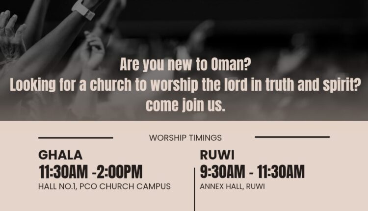 ഒമാനിൽ പുതുതായി എത്തിയവർക്കും സത്യത്തിലും ആത്മാവിലും ആരാധിക്കാൻ ആഗ്രഹിക്കുന്നവർക്കും ഈ കൂട്ടായ്മയിലേക്ക് സ്വാഗതമെന്ന് സഭാ ഭാരവാഹികൾ അറിയിച്ചു.