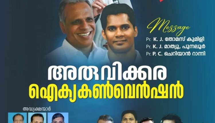 അരുവിക്കര : അരുവിക്കര ക്രിസ്ത്യൻ ഫെലോഷിപ്പിന്റെ ആഭിമുഖ്യത്തിൽ ഡിസംബർ 6 മുതൽ 8 വരെ അരുവിക്കരെ ഐക്യകൺവെൻഷൻ നടക്കും.