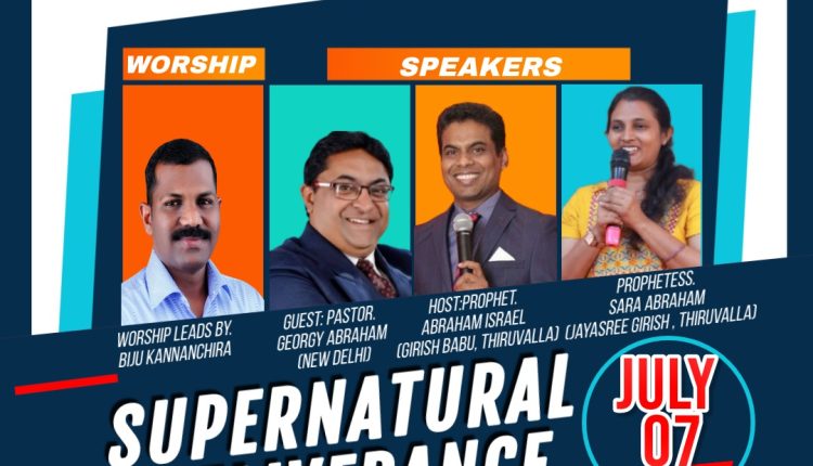 തിരുവല്ല : തിരുവല്ല ഫെയ്ത് ഫാമിലി മിനിസ്ട്രിയുടെ ആഭിമുഖ്യത്തിൽ  ജൂലൈ 7 ന് കുരിശുകവലയിൽ സൂപ്പർ നാച്ചുറൽ ഡെലിവെറൻസ് എന്ന തീമിൽ സൺ‌ഡേ മീറ്റിംഗ് നടക്കും. ബ്രദർ ബൈജു കണ്ണങ്കര ഗാന ശുശ്രുഷ നയിക്കും തുടർന്ന് പാ ജോർജി എബ്രഹാം, പാ എബ്രഹാം ഇസ്രായേൽ, സിസ്റ്റർ സാറ എബ്രഹാം എന്നിവർ പ്രസംഗിക്കും