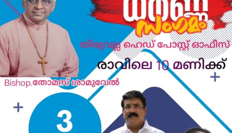 തിരുവല്ല: മത സ്വാതന്ത്ര്യം സംരക്ഷിക്കണമെന്നും നിരപരാധികളായ സുവിശേഷകരെ മോചിപ്പിക്കണമെന്നും ആവശ്യപ്പെട്ട് യുണൈറ്റഡ് പെന്തകോസ്തൽ കൗൺസിലിന്റെ ആഭിമുഖ്യത്തിൽ മാർച്ച് 3 രാവിലെ പത്തിന് തിരുവല്ല ഹെഡ് പോസ്റ്റ് ഓഫീസിന് മുന്നിൽ ധർണ്ണ സംഘടിപ്പിക്കുന്നു. രാജ്യത്ത് വിവിധ ഭാഗങ്ങളിൽ സുവിശേഷപ്രവർത്തകരെതിരായി ഉയരുന്ന ആക്രമണങ്ങളും കള്ളക്കേസുകളും അവസാനിപ്പിക്കണമെന്ന് യോഗം ആവശ്യപ്പെടും.