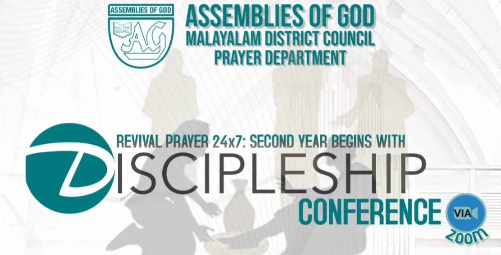 പുനലൂർ: അസംബ്ളിസ് ഓഫ് ഗോഡ് മലയാളം ഡിസ്ട്രിക്ട് പ്രയർ ഡിപ്പാർട്ട്മെൻ്റ് നേതൃത്വം നല്കുന്ന തുടർമാന ഓൺലൈൻ പ്രാർത്ഥനയായ റിവൈവൽ പ്രയർ ഇന്നലെ രണ്ടാം വർഷത്തിലേക്കു പ്രവേശിച്ചു. ഇതിന്റെ ഭാഗമായി ഇന്നുമുതൽ 4 വരെ ഡിസൈപ്പിൾഷിപ്പ് കോൺഫറൻസ് ക്രമീകരിച്ചിട്ടുണ്ട്.