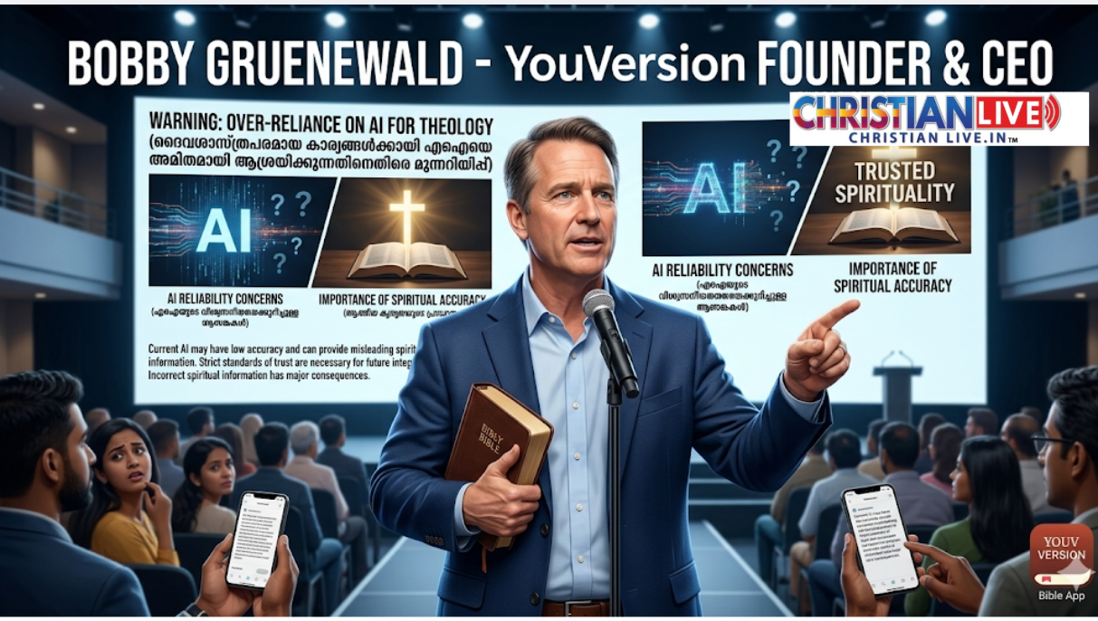 യുഎസ് : ലോകപ്രശസ്തമായ ‘യൂവേർഷൻ’ ബൈബിൾ ആപ്പിന്റെ സ്ഥാപകനും സിഇഒയുമായ ബോബി ഗ്രൂൺവാൾഡ്, ദൈവശാസ്ത്രപരമായ കാര്യങ്ങൾക്കായി ആർട്ടിഫിഷ്യൽ ഇന്റലിജൻസിനെ അമിതമായി ആശ്രയിക്കുന്നതിനെതിരെ മുന്നറിയിപ്പ് നൽകി. നിലവിലെ എഐ സംവിധാനങ്ങൾക്ക് കൃത്യത കുറവാണെന്നും ആത്മീയമായ കാര്യങ്ങളിൽ അവ നൽകുന്ന വിവരങ്ങൾ എപ്പോഴും വിശ്വസനീയമാകണമെന്നില്ലെന്നും അദ്ദേഹം ചൂണ്ടിക്കാട്ടി.