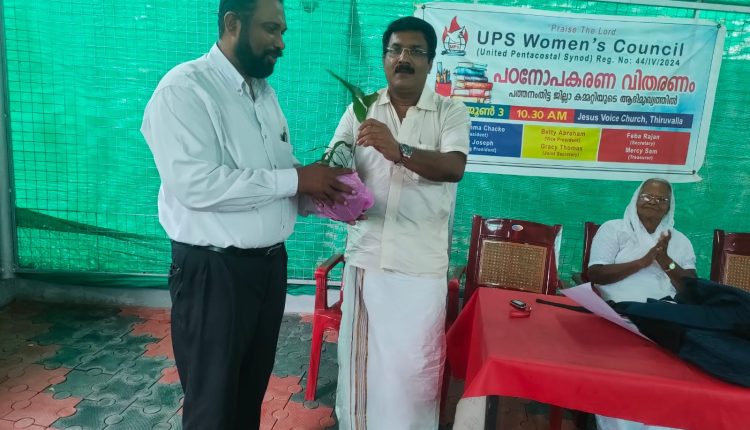 തിരുവല്ലയിൽ പരിസ്ഥിതി ദിന സമ്മേളനം Newssecular On Jun 4, 2024 71 തിരുവല്ല: യുണൈറ്റഡ് പെന്തകോസ്ത് സിനഡ് വുമൺസ് കൌൺസിലിന്റെ നേതൃത്വത്തിൽ തിരുവല്ല താലൂക്കിൽ പരിസ്ഥിതി ദിന സമ്മേളനം നടന്നു. യൂ പി എസ് സംസ്ഥാന ജനറൽ സെക്രട്ടറി ബാബു പറയത്തുകാട്ടിൽ പാസ്റ്റർ എബ്രഹാം മാത്യുവിന് വൃക്ഷതൈ കൊടുത്ത് ഉൽഘാടനം ചെയ്തു 71 Share