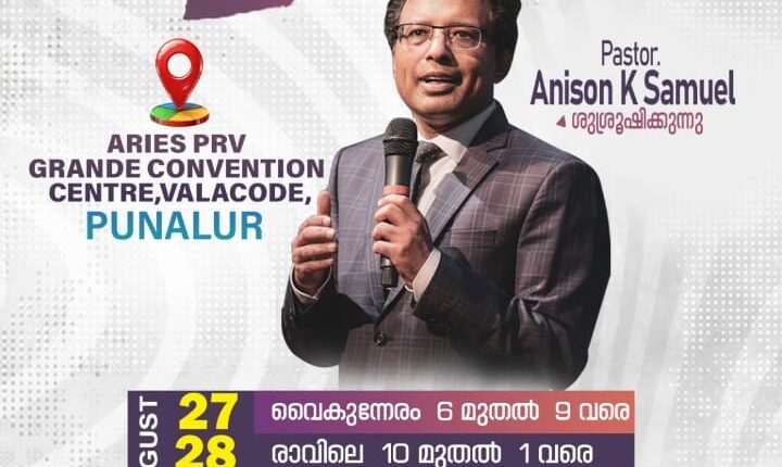 പാസ്റ്റർ അനിസൻ കെ ശമുവേൽ കാനഡ & ടീം ശുശ്രൂഷിക്കും.