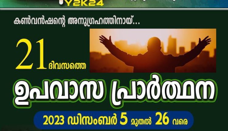 തിരുവല്ല: ജനുവരി 7 മുതൽ 14 വരെ തിരുവല്ല പബ്ളിക് സ്റ്റേഡിയത്തിൽ നടക്കുന്ന പെന്തകോസ്ത് ഐക്യ കൺവൻഷൻ – ഉണർവ് Y2K24 ന്റെ അനുഗ്രഹത്തിനായി 21 ദിവസത്തെ ഉപവാസ പ്രാർത്ഥന സംഘടിപ്പിക്കുന്നു.