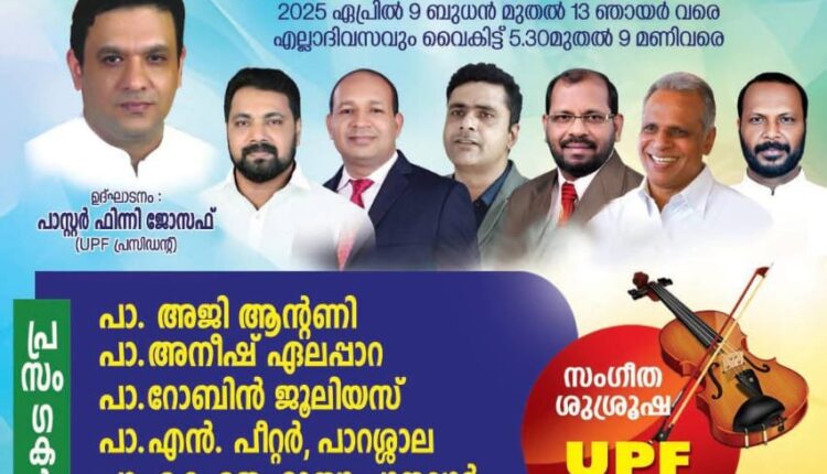 പാസ്റ്റർ അജി ആന്റണി, പാസ്റ്റർ അനീഷ് ഏലപ്പാറ, പാസ്റ്റർ റോബിൻ ജൂലിയസ്, പാസ്റ്റർ എൻ പീറ്റർ തിരുവനന്തപുരം, പാസ്റ്റർ കെ ജെ മാത്യു പുനലൂർ, പാസ്റ്റർ ജോയ് പാറക്കൽ എന്നിവർ ദൈവവചനം ശുശ്രൂഷിക്കും. യു.പി.എഫ് ക്വയർ ഗാനങ്ങൾ ആലപിക്കും. അതിഥികളായി ബ്രദർ അനിൽ ശൂരനാട്, ബ്രദർ ബോവസ് രാജു, ബ്രദർ ജോയൽ പടവത്ത് എന്നിവർ ഗാനങ്ങൾ ആലപിക്കും. ബുധനാഴ്ച മുതൽ ശനിയാഴ്ച വരെ രാവിലെ 8 30 മുതൽ 12:30 വരെ ചിൽഡ്രൻസ് ഫെസ്റ്റും, (എക്സൽ വി ബി എസ്) നടത്തപ്പെടുന്നു. വെള്ളിയാഴ്ച രാവിലെ 10 മുതൽ 1 മണി വരെ സംയുക്ത ഉപവാസ പ്രാർത്ഥനയും നടക്കും. എല്ലാദിവസവും വൈകിട്ട്