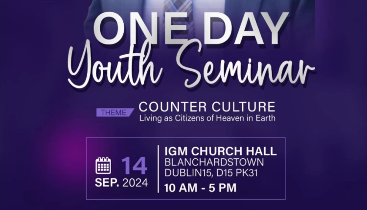 ഡബ്ലിൻ : ഐ.ജി.എം. യൂത്ത് ഫോർ ക്രൈസ്റ്റിന്റെ ആഭിമുഖ്യത്തിൽ സെപ്റ്റംബർ 14 ന് ഐ.ജി.എം. ചർച്ച് ഹാളിൽ ഏകദിന യൂത്ത് സെമിനാർ നടക്കും. പാ. സാം തോമസ് ക്ലാസുകൾ നയിക്കും. ഇമ്മാനുവേൽ ഗോസ്പൽ മിഷൻ ഡബ്ലിൻ ചർച്ചിന്റെ പുത്രിക സംഘടനയാണ് യൂത്ത് ഫോർ ക്രൈസ്റ്റ്.