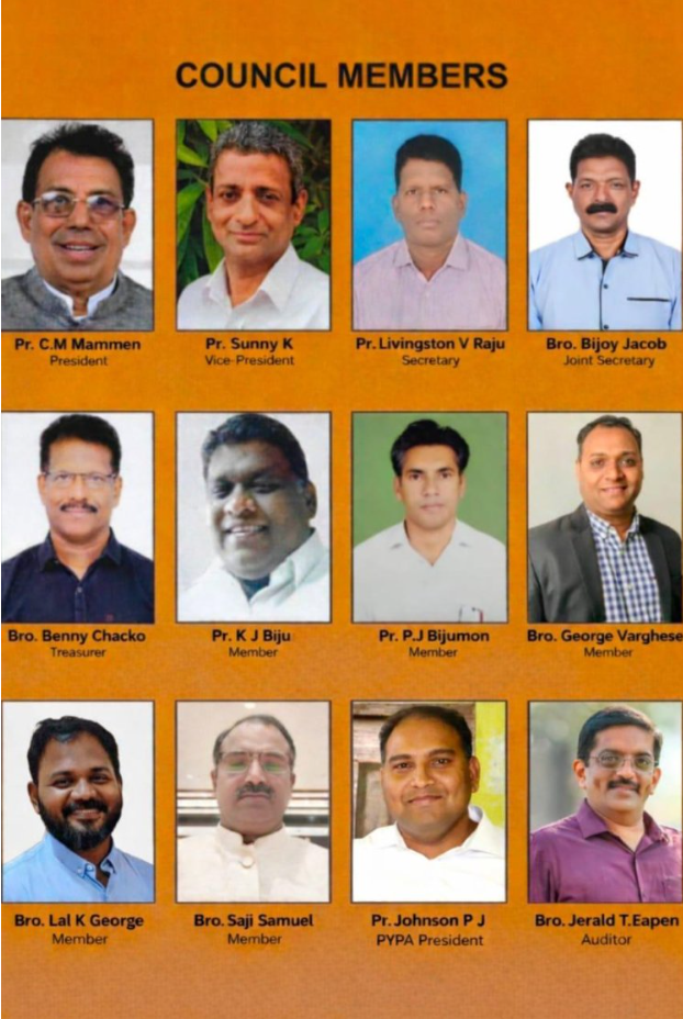 പുതിയ ഭാരവാഹികളായി പാസ്റ്റർ സി.എം. മാമ്മൻ (പ്രസിഡന്റ്), പാസ്റ്റർ കെ. സണ്ണി (വൈസ് പ്രസിഡന്റ്), പാസ്റ്റർ ലിവിങ്സ്റ്റൺ വി. രാജു (സെക്രട്ടറി), ബിജോയ് ജേക്കബ് (ജോയിന്റ് സെക്രട്ടറി), ബെന്നി ചാക്കോ (ട്രഷറർ) എന്നിവരെയും കമ്മിറ്റി അംഗങ്ങളായി പാസ്റ്റർ കെ.ജെ. ബിജു, പാസ്റ്റർ പി.ജെ. ബിജുമോൻ, ജോർജ്ജ് വർഗ്ഗീസ്, ലാൽ കെ. ജോർജ്ജ്, സജി സാമുവേൽ, പാസ്റ്റർ ജോൺസൺ പി.ജെ. (പി.വൈ.പി.എ. പ്രസിഡന്റ്), ജൊറോഷ് ടി. ഈപ്പൻ (ഓഡിറ്റർ) എന്നിവരെയും തിരഞ്ഞെടുത്തു.