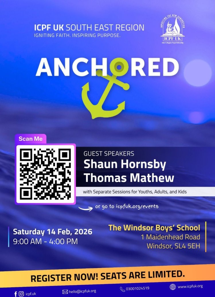 യുകെ : ഇന്റർ കോളേജിയറ്റ് പ്രയർ ഫെലോഷിപ്പ് (ICPF) യുകെ സൗത്ത് ഈസ്റ്റ് റീജിയന്റെ ആഭിമുഖ്യത്തിൽ ‘ANCHORED’ എന്ന പേരിൽ ഏകദിന യുവജന സമ്മേളനം സംഘടിപ്പിക്കുന്നു. ഇന്ന്, ഫെബ്രുവരി 14-ന് വിൻഡ്‌സർ ബോയ്‌സ് സ്കൂളിലാണ് ഈ പരിപാടി നടക്കുന്നത്.