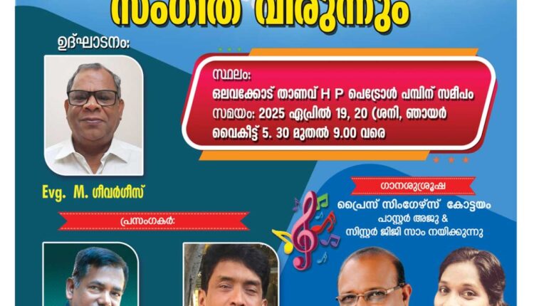 ഒലവക്കോടിൽ ഐപിസി കർമേൽ ധോണി സഭ സുവിശേഷയോഗവും സംഗീതവിരുന്നും