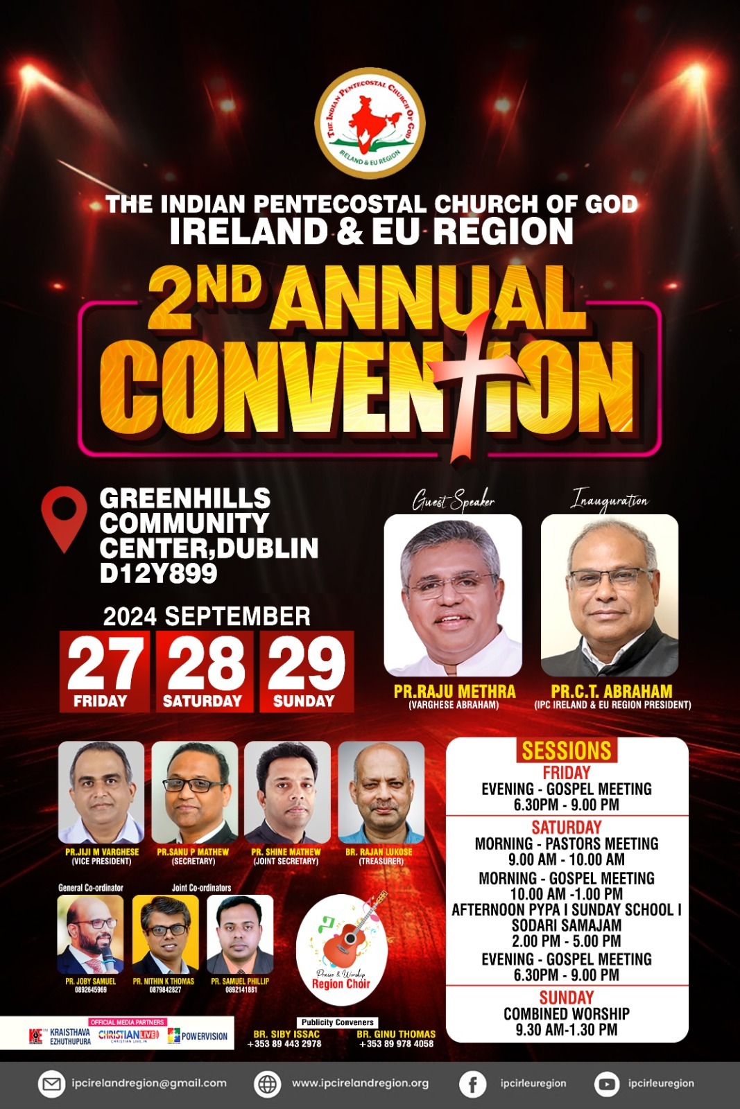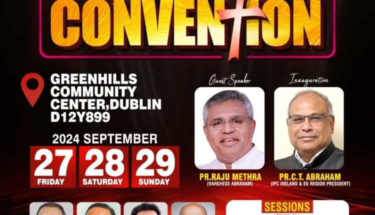 ഡബ്ളിൻ: ഐപിസി അയർലൻഡ് & ഇയൂ റീജിയന്റെ രണ്ടാമത് വാർഷിക കൺവെൻഷൻ സെപ്തം. 27 – 29 വരെ ഡബ്ളിൻ ഗ്രീൻ ഹിൽസ് കമ്മ്യൂണിറ്റി സെൻട്രൽ നടക്കും