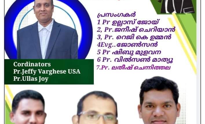 കരിക്കോട് : പെന്തക്കോസ്ത് ഐക്യവേദിയുടെ ആഭിമുഖ്യത്തിൽ ഒക്ടോബർ 15 ചൊവ്വാഴ്ച പരസ്യയോഗം നടക്കും. കരിക്കോട് ഐപിസി ചർച്ച് നേതൃത്വം നൽകും. പാ. ഉല്ലാസ് ജോയ്, പാ. ജനീഷ് ചെറിയാൻ, പാ. റെജി കെ ഉമ്മൻ, ഇവാ. ജോൺസൻ, പാ. ഷിബു മുളവന, പാ. വിൽസൺ മാത്യൂ, പാ. ലതീഷ് ചെന്നിത്തല എന്നിവർ പ്രസംഗിക്കും. പാ. ജെഫി വർഗീസ്, പാ. ഉല്ലാസ് ജോയ് എന്നിവർ കോർഡിനേറ്റർസ് ആയിരിക്കും.