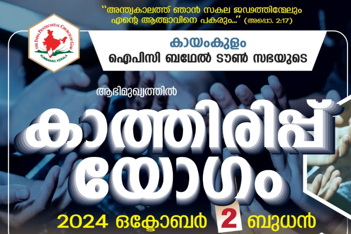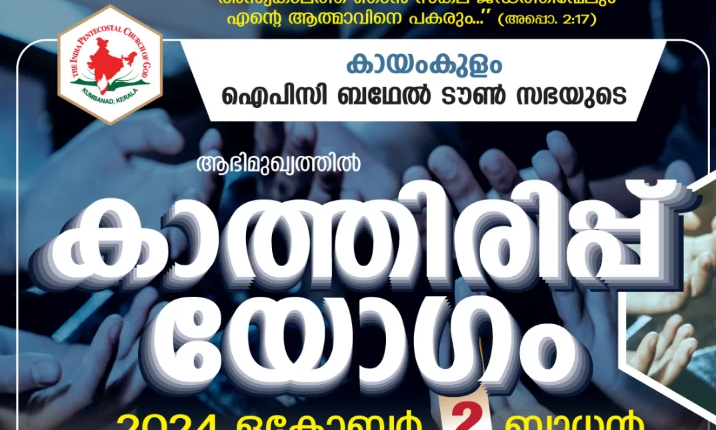 കായംകുളത്ത് ഐപിസി ബഥേൽ ടൗൺ ചർച്ച് കാത്തിരിപ്പ് യോഗം ChristianNews On Sep 27, 2024 70 കായംകുളം : ഐപിസി ബഥേൽ ടൗൺ ചർച്ചിന്റെ ആഭിമുഖ്യത്തിൽ ഒക്ടോബർ 2 ന് കാത്തിരിപ്പ് യോഗം നടക്കും. പാ. ബൈജു കാട്ടാക്കട, പാ. വർഗീസ് ബേബി കായംകുളം എന്നിവർ പ്രസംഗിക്കും. ബിനു എബ്രഹാം ഗാന ശുശ്രുഷ നയിക്കും. പാ. ജോമോൻ തെക്കക്കര നേതൃത്വം നൽകും. 70 Share