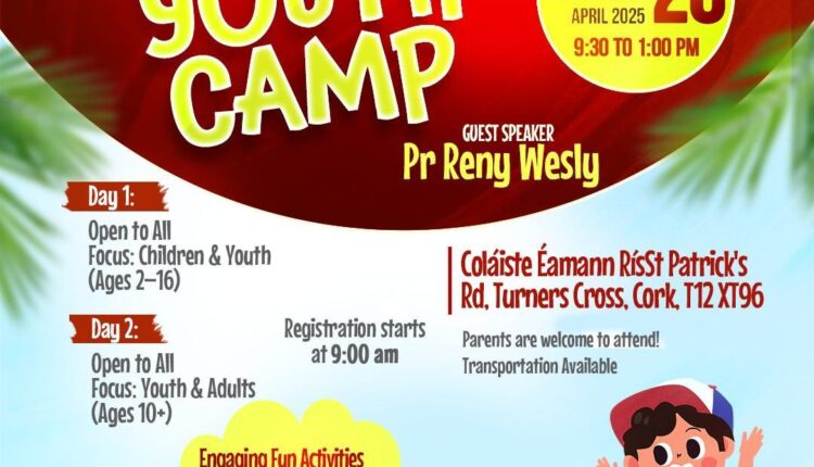 അയർലൻഡ് : കോർക്ക് എബനേസർ വർഷിപ് സെന്ററിൽ ഏപ്രിൽ 25 മുതൽ 26 വരെ കിഡ്സ് യൂത്ത് ക്യാമ്പ് നടക്കും. പാസ്റ്റർ റെനി വെസ്ലി മുഖ്യാതിഥി ആയിരിക്കും. പാസ്റ്റർമാരായ എം എം തോമസ്, ബിജുമോൻ കെ പി എന്നിവർ നേതൃത്വം നൽകും.