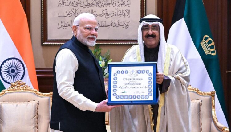 കുവൈറ്റ് : പ്രധാനമന്ത്രി നരേന്ദ്ര മോദിക്ക് കുവൈറ്റിന്റെ പരമോന്നത ബഹുമതി. മോദി ഞായറാഴ്ച കുവൈറ്റിന്റെ പരമോന്നത ബഹുമതിയായ ‘ദി ഓര്ഡര് ഓഫ് മുബാറക് അല് കബീര്’ ഏറ്റുവാങ്ങി.