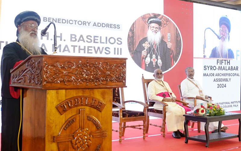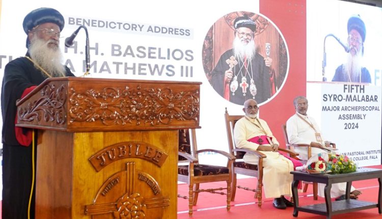 പാലാ : വർത്തമാനകാലഘട്ടത്തിന്റെ വെല്ലുവിളികൾ തിരിച്ചറിഞ്ഞ് സഭ കൂട്ടായി പ്രതികരിക്കണമെന്ന് മലങ്കര ഓർത്തഡോക്‌സ് സഭാതലവൻ ബസേലിയോസ് മാർത്തോമ്മാ മാത്യൂസ് ത്രിദീയൻ. സീറോമലബാർസഭ മേജർ ആർക്കിഎപ്പിസ്‌കോപ്പൽ അസംബ്ലിയുടെ രണ്ടാംദിനത്തിൽ നടത്തിയ അനുഗ്രഹപ്രഭാഷണത്തിലാണ് അദ്ദേഹം ഇപ്രകാരം പറഞ്ഞത്.