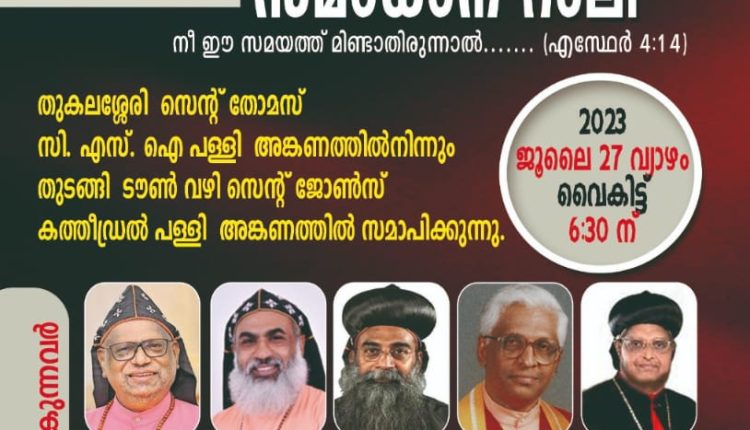 ഡോ. തിയഡോഷ്യസ് മാര്‍ത്തോമ്മ മെത്രപ്പൊലീത്ത, ആര്‍ച്ച് ബിഷപ്പ് ഡോ.തോമസ് മാര്‍ കുറിലോസ്, ഡോ. യുഹാനോന്‍ മാര്‍ ക്രിസോസ്റ്റമോസ് മെത്രാപ്പൊലീത്ത, ബിഷപ്പ് തോമസ് സാമുവേല്‍, കുര്യാക്കോസ് മാര്‍ ഗ്രിഗോറിയോസ് മെത്രാപ്പൊലീത്ത, ഡോ. ഗീവര്‍ഗീസ് മാര്‍ കുറിലോസ് മെത്രാപ്പൊലീത്ത, മാത്യൂസ് മാര്‍ സില്‍വാനിയോസ് എപ്പിസ്‌കോപ്പ, മേജര്‍ ഒ.പി.ജോണ്‍, പാസ്റ്റര്‍മാരായ രാജു പുവക്കാല, ജെ. ജോസഫ് എന്നിവര്‍ നേതൃത്വം നല്‍കും. കൂടാതെ വിവിധ സഭാവിഭാഗങ്ങളിലെ വൈദീകരും, പാസ്റ്റര്‍മാരും, വിശ്വാസ സമൂഹവും പങ്കെടുക്കും. എം സി റോഡില്‍ ചെങ്ങന്നുര്‍ ഭാഗത്ത് (തെക്ക്) നിന്നും വരുന്ന വാഹനങ്ങള്‍ സിഎംഎസ് സ്‌കൂള്‍ ഗ്രൗണ്ടിലും തിരുവല്ല ഭാഗത്ത് (വടക്ക്) നിന്നും വരുന്ന വാഹനങ്ങള്‍ സെന്റ് തോമസ് പള്ളിയുടെ സമീപമുള്ള ഗ്രൗണ്ടിലും പാര്‍ക്ക് ചെയ്യേണ്ടതാണ്.