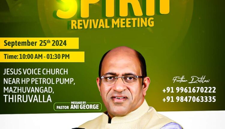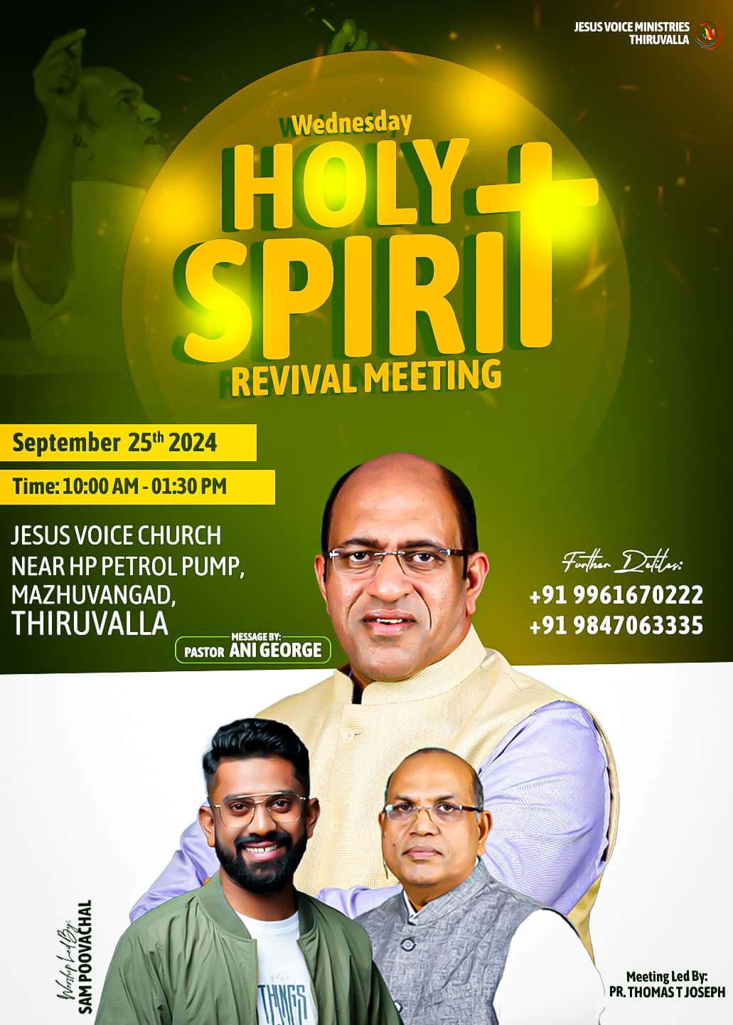 മഴുവങ്ങാട് ഉണർവ് യോഗം ChristianNews On Sep 24, 2024 52 തിരുവല്ല : ജീസസ് വോയിസ് മിനിസ്ട്രിയുടെ ആഭിമുഖ്യത്തിൽ സെപ്റ്റംബർ 25 ന് മഴുവങ്ങാട് ജീസസ് വോയിസ് ചർച്ചിൽ ഉണർവ് യോഗം നടക്കും. പാ. അനി ജോർജ് പ്രസംഗിക്കും. ബ്രദർ സാം പൂവച്ചൽ ഗാന ശുശ്രുഷ നയിക്കും. പാ. തോമസ് റ്റി. ജോസഫ് നേതൃത്വം നൽകും. 52 Share