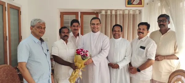 ചങ്ങനാശേരി : ക്നാനായ കത്തോലിക്കാ കോൺഗ്രസിന്റെ അതിരൂപതാ സമിതിയംഗങ്ങൾ ചങ്ങനാശേരി മെത്രാസനമന്ദിരത്തിലെത്തി അതിരൂപതാ നിയുക്ത മെത്രാപ്പോലിത്ത മാർ തോമസ് തറയിലിനെ സന്ദർശിച്ചു. ഫാ. മൈക്കിൾ വെട്ടിക്കാട്ട്, അഡ്വ. അജി കോയിക്കൽ, ബാബു പറമ്പടത്തുമലയിൽ, ബേബി മുളവേലിപ്പുറം, ജോൺ തെരുവത്ത്, ടോം കരികുളം എന്നിവരാണ് സന്ദർശിച്ചത്.