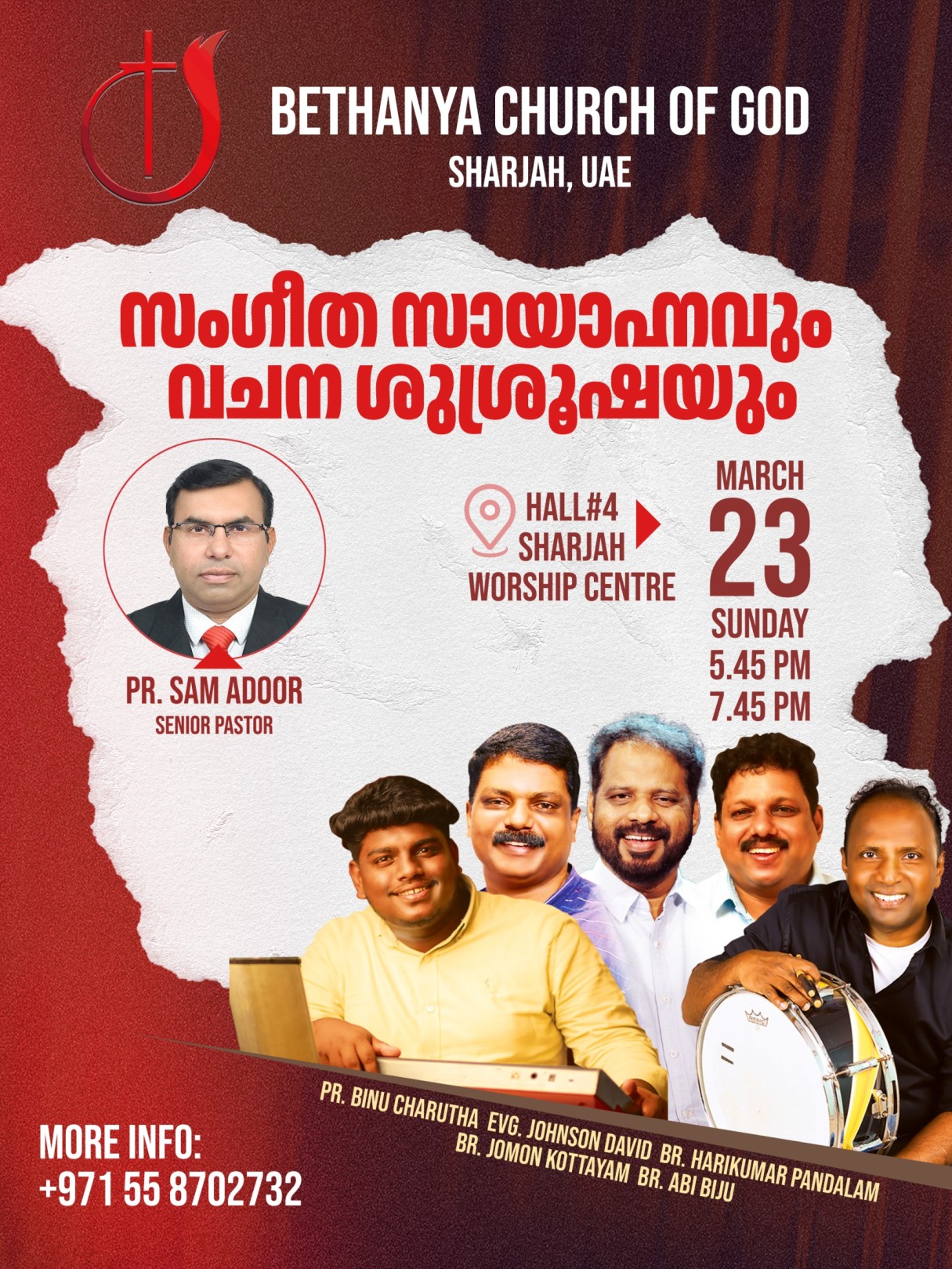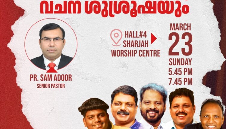 കൂടുതൽ വിവരങ്ങൾക്ക്: പാസ്റ്റർ സാം അടൂർ, +971558702732.