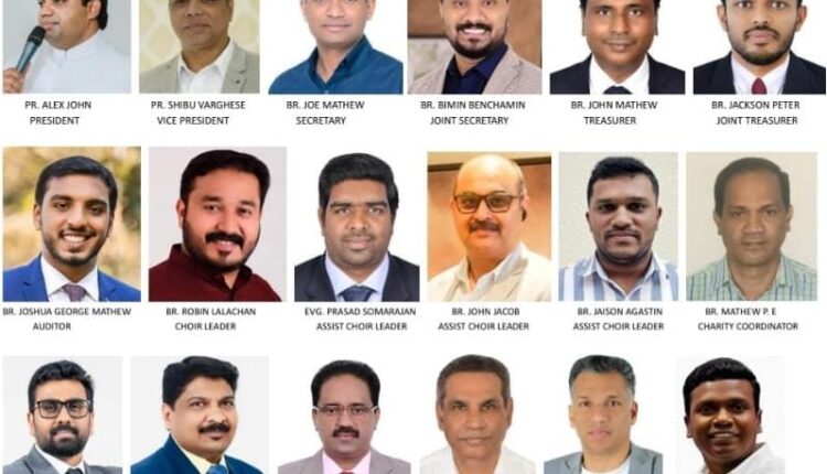 മറ്റു ഭാരവാഹികൾ: ജോയിൻറ് സെക്രട്ടറി: ബ്ര.ബിമിൻ ബെഞ്ചമിൻ, ജോയിൻറ് ട്രഷറർ: ബ്ര.ജാക്സൺ പീറ്റർ, ക്വയർ ലീഡർ: ബ്ര.റോബിൻ ലാലച്ചൻ, അസിസ്റ്റന്റ് കൊയർ ലീഡേഴ്സ്: ഇവാ. പ്രസാദ് സോമരാജൻ, ബ്ര. ജോൺ ജേക്കബ്, ബ്ര. ജെയ്സൺ അഗസ്റ്റിൻ, യൂത്ത് ലീഡർ: ബ്ര. ലിൻജോ മാത്യു, മിഷൻ ഡയറക്ടർ: ബ്ര.എബ്രഹാം മാത്യു, അസ്സോസിയേറ്റു മിഷൻ ഡയറക്ടർ: ബ്ര. ജോബ്സൺ കുരിയൻ, പ്രയർ കോർഡിനേറ്റർസ്: പാസ്റ്റർ.നൈനാൻ പി മാത്യു, ഇവാ.റൊണാൾഡ് ടി ബെഞ്ചമിൻ, ചാരിറ്റി കോഓർഡിനേറ്റർ: ബ്ര.മാത്യു പി ഇ, ഓഡിറ്റർ: ബ്ര. ജോഷ്വാ ജോർജ് മാത്യു, പബ്ലിസിറ്റി കൺവീനർ: ബ്ര.ജോജി വർഗീസ്.