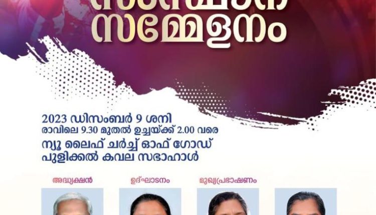 പുളിക്കൽകവല: ന്യൂ ലൈഫ് ചർച്ച് ഓഫ് ഗോഡ് ദൈവസഭയുടെ ലേഡീസ് മിനിസ്ട്രി ഡിപ്പാർട്ട്മെന്റിന്റെ സംസ്ഥാന സമ്മേളനം ഡിസംബർ 9 ാം തീയതി ന്യൂ ലൈഫ് ചർച്ച് ഓഫ് ഗോഡ് ദൈവസഭ പുളിക്കൽകവലയിൽ നടക്കും. ലേഡീസ് മിനിസ്ട്രി ഡിപ്പാർട്ട്മെന്റിന്റെ പ്രസിഡന്റ്‌ സിസ്റ്റർ ലീലാമ്മ മാത്യു സമ്മേളനം ഉദ്ഘാടനം ചെയ്യുകയും, സിസ്റ്റർ ഷീല ദാസ് വചന ശുശ്രൂഷ നിർവഹിക്കുകയും ദൈവസഭ ജനറൽ സെക്രട്ടറി പാസ്റ്റർ എം.ജെ. മത്തായി അധ്യക്ഷത വഹിക്കുകയും ചെയ്യും.