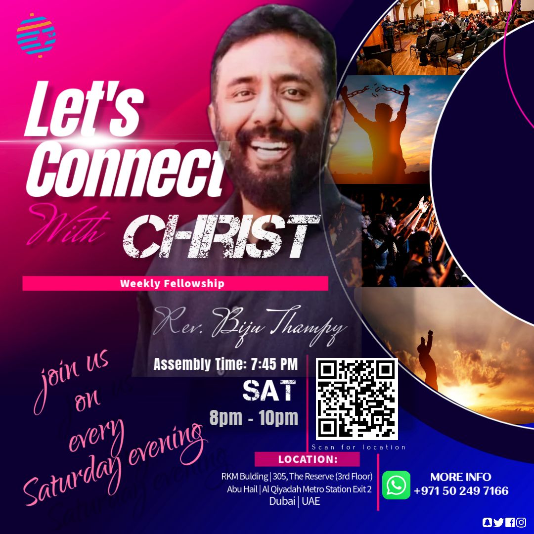 റവ. ബിജു തമ്പി പ്രത്യേകാതിഥിയായി പങ്കെടുക്കുകയും വചന സന്ദേശം പങ്കുവയ്ക്കുകയും ചെയ്യും. രാത്രി 7:45 മുതൽ 10.00 വരെ നടക്കുന്ന സംഗമത്തിൽ ആരാധന, വചനം, കൂട്ടായ്മ എന്നിവക്ക് പ്രത്യേക പ്രാധാന്യം നൽകും.