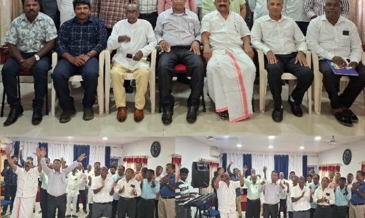 ഇന്നലെ രാവിലെ 10.30 മുതൽ 1.15 വരെ നടന്ന മീറ്റിംഗിൽ താലൂക്ക് പ്രസിഡണ്ട് പാസ്റ്റർ യോവേൽ ദാസിന്റെ അദ്ധ്യക്ഷതയിൽ നടന്ന യോഗത്തിൽ സംസ്ഥാന പൊളിറ്റിക്കൽ സെക്രട്ടറി കെ എ എബ്രഹാം മുഖ്യ അഥിതിയായി. ദേശീയ ട്രഷറർ പാസ്റ്റർ സൂരൻ സീനായി പ്രസംഗിച്ചു.