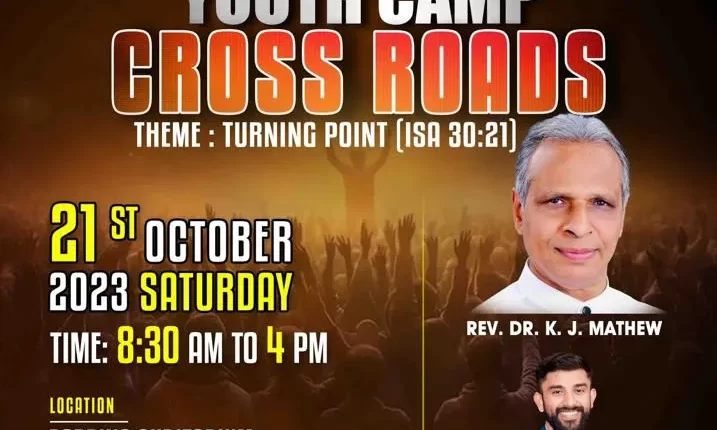 കുവൈറ്റ് : ഫസ്റ്റ് ഏ. ജി. C. A. യുടെ ആഭിമുഖ്യത്തിൽ ഒക്ടോ. 21 ന് ഏകദിന യുവജന ക്യാമ്പ് ‘CROSS ROADS’ അബ്ബാസിയ പോപ്പിൻസ് ഓഡിറ്റോറിയത്തിൽ നടക്കും. പാ. ജെയിംസ് എബ്രഹാമിന്റെ അദ്ധ്യക്ഷതയിൽ നടക്കുന്ന ക്യാമ്പിൽ റവ. ഡോ. കെ. ജെ. മാത്യു ക്യാമ്പിന് നേതൃത്വം നൽകും. ‘TURNING POINT’ (Isa : 30:21) എന്നതാണ് ഈ വർഷത്തെ ക്യാമ്പിന്റെ ചിന്ത വിഷയം. ഇമ്മാനുവേൽ കെ. ബി. ഗാനശുശ്രുഷയ്ക്ക് നേതൃത്വം നൽകും. കൂടുതൽ വിവരങ്ങൾക്ക് : ഷൈജു രാജൻ (+965 9006 3952), ജോഫിൻ ഡാളസ് (+965 6584 4793)