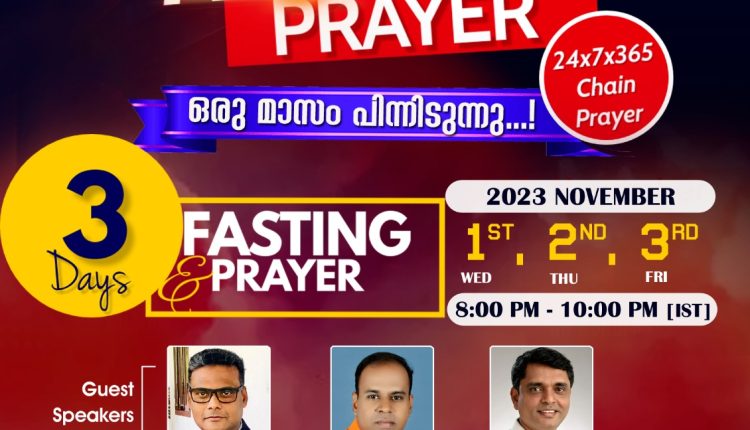 നവംബർ ഒന്നു മുതൽ മൂന്ന് വരെ ഉപവാസ പ്രാർത്ഥനാ ദിവസങ്ങളായി വേർതിരിച്ചിരിക്കുകയാണ്. പ്രാർത്ഥനാ സ്ലോട്ടുകൾ തുടരുമ്പോൾ തന്നെ രാത്രി എട്ടു മുതൽ പത്ത് വരെയുള്ള സമയം പ്രത്യേകയോഗമായി ക്രമീകരിച്ചിരിക്കുകയാണ്. വ്യത്യസ്ത ശുശ്രുഷകൾക്കായും പ്രാർത്ഥനാ സ്ളോട്ടുകൾ ഉപയോഗിക്കും.