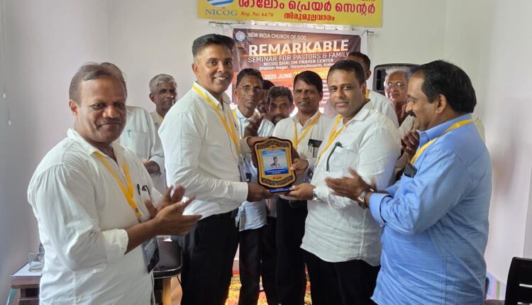 കൊല്ലം: ന്യൂ ഇന്ത്യാ ചർച്ച് ഓഫ് ഗോഡ് കൊല്ലം സെന്റെറിന്റെ ആഭിമുഖ്യത്തിൽ കൊല്ലം ശാലേം പ്രയർ സെന്ററിൽ പാസ്റ്റേഴ്സ് ഫാമിലി സെമിനാറും ശുശ്രൂഷകരെ ആദരിക്കലും നടന്നു. പാസ്റ്റർ റോയി മാത്യൂ ക്ലാസുകൾ നയിച്ചു.