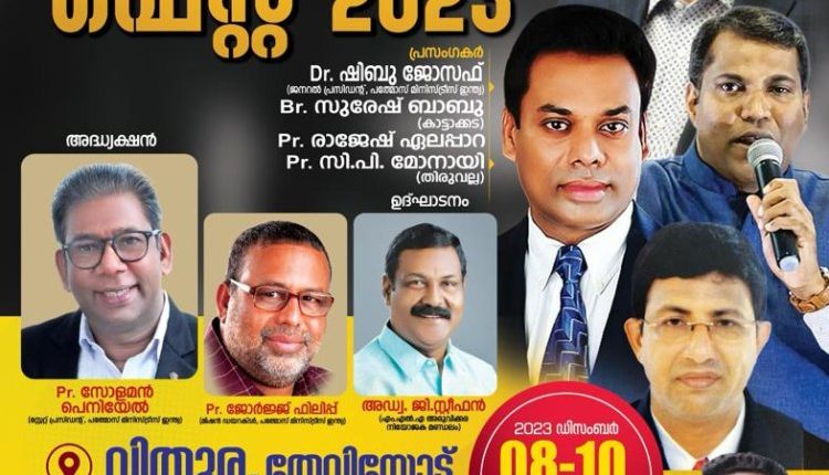 സുരേഷ് ബാബു, പാസ്റ്റർ സി. പി. മോനായി, രാജേഷ് ഏലപ്പാറ എന്നിവർ മുഖ്യ സന്ദേശം നൽകും. സാസ്കാരിക സമ്മേളനം അരുവിക്കര എം.എൽ.എ അഡ്വ. ജി സ്റ്റീഫൻ ഉദ്ഘാടനം ചെയ്യും. അനിൽ അടൂർ, ലോഡ്സൺ ആന്റണി എന്നിവർ ഗാനശുശ്രൂഷ നയിക്കും. പാസ്റ്റന്മാരായ ശോഭാ രാജ്, ബിനു, എന്നിവർ കൺവൻഷൻ കൺവീനർന്മാരായി പ്രവർത്തിക്കുന്നു.