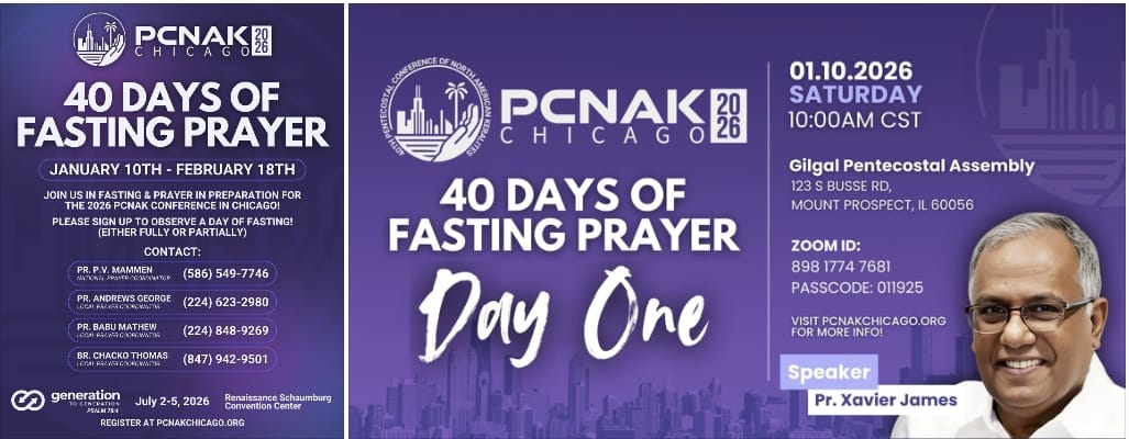 ഫെബ്രുവരി 18 ന് അവസാനിക്കുന്ന 40 ദിന ഉപവാസ പ്രാർത്ഥനയിൽ അമേരിക്കയിലെ വിവിധ സംസ്ഥാനങ്ങളിൽ നിന്നായി നിരവധി പേർ ഓൺലൈനിലൂടെയും നേരിട്ടും അണിചേരും.