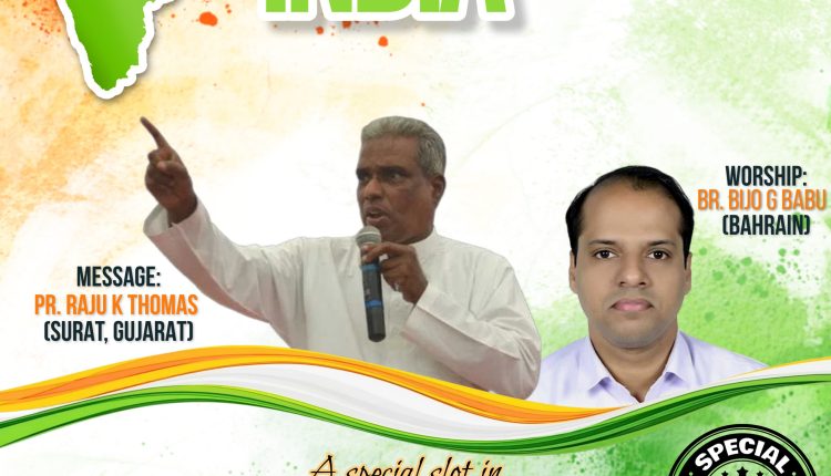 അടൂർ :അസംബ്ലീസ് ഓഫ് ഗോഡ് മലയാളം ഡിസ്ട്രിക്ട് പ്രയർ ഡിപ്പാർട്ട്മെൻ്റ് നേതൃത്വം നല്കുന്ന നിലയ്ക്കാത്ത പ്രാർത്ഥനയിൽ ഇന്നു വൈകിട്ട് ഏഴു മുതൽ ഒമ്പത് വരെ ‘പ്രേ ഫോർ ഇന്ത്യ’ എന്ന പേരിൽ പ്രത്യേക പ്രാർത്ഥന നടത്തുന്നു. ഇന്ത്യയുടെ എഴുപത്തഞ്ചാമത് റിപ്പബ്ലിക് ദിനമായ ഇന്ന് ഭാരതത്തിൻ്റെ ഐക്യതയ്ക്കും പുരോഗതിക്കും സമാധാനത്തിനും വേണ്ടി പ്രാർത്ഥിക്കും. പാസ്റ്റർ രാജു കെ.തോമസ് സൂററ്റ് മുഖ്യസന്ദേശം നല്കും . ബിജോ ജി ബാബു ബഹ്റിൻ സംഗീത ശുശ്രുഷ നയിക്കും.